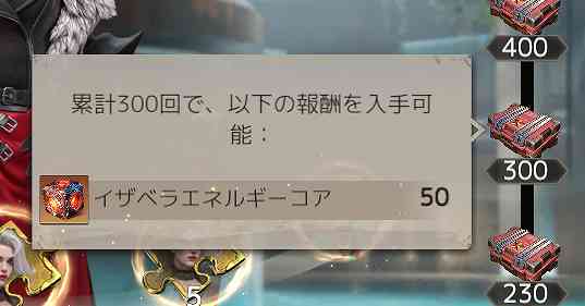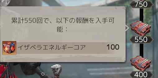 因みに、ウェポン持ちじゃないヒーロー(現在はイザベラ以外)はこの段階報酬のエネルギーコアの部分はレジェンドの欠片になるので、段階報酬を開く際には選択ヒーローを間違えないように気を付けてください。