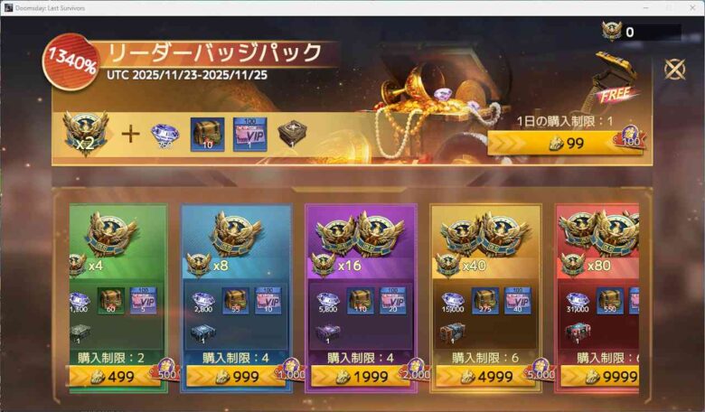 微課金者はもうあきらめて、他のもっと効率の良い課金パックなどを購入したほうが良きです。